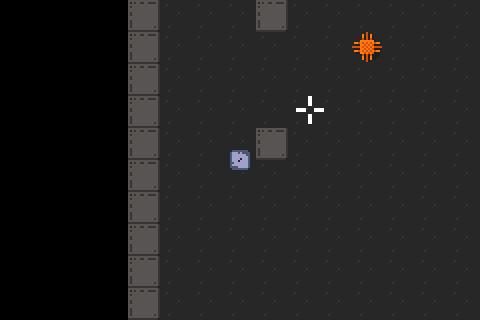 Nothing too fancy today. I added bullets, a crosshair, and sprites to match. I debated whether or not to make mobs and bullets both just be specially configured game objects, but they really don't have enough in common for that.